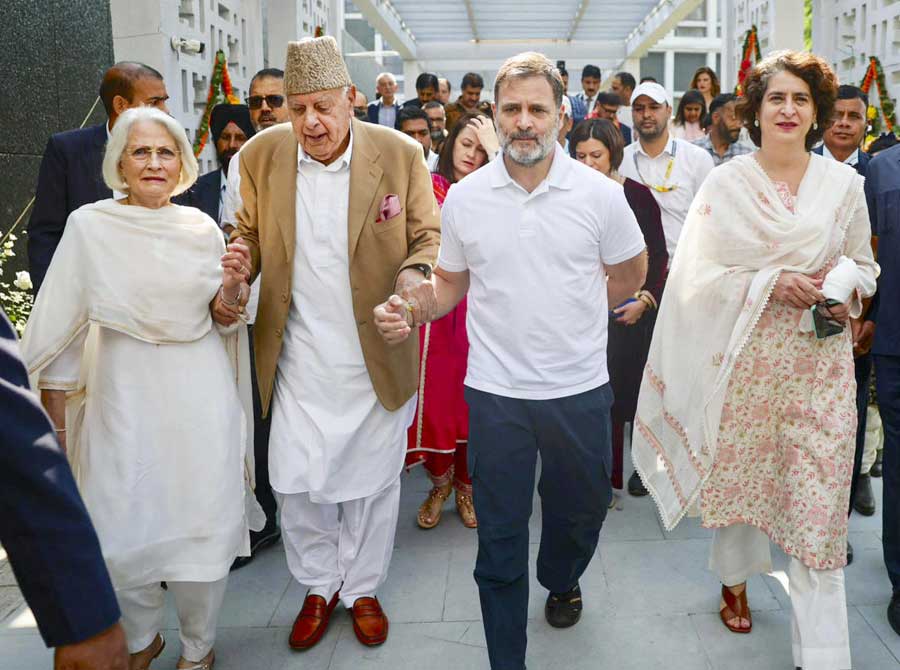INDIA block leaders, from Congress leaders Rahul Gandhi, Priyanka Gandhi Vadra and Mallikarjun Kharge, SP chief Akhilesh Yadav, Left leaders Prakash Karat and D. Raja, DMK’s Kanimozhi and NCP’s Supriya Sule to PDP chief Mehbooba Mufti attended the ceremony.
