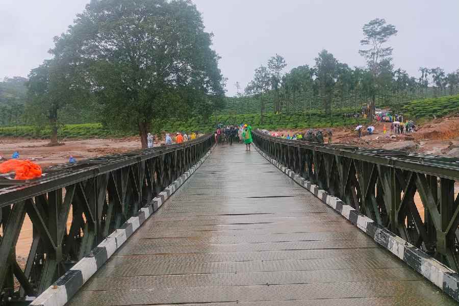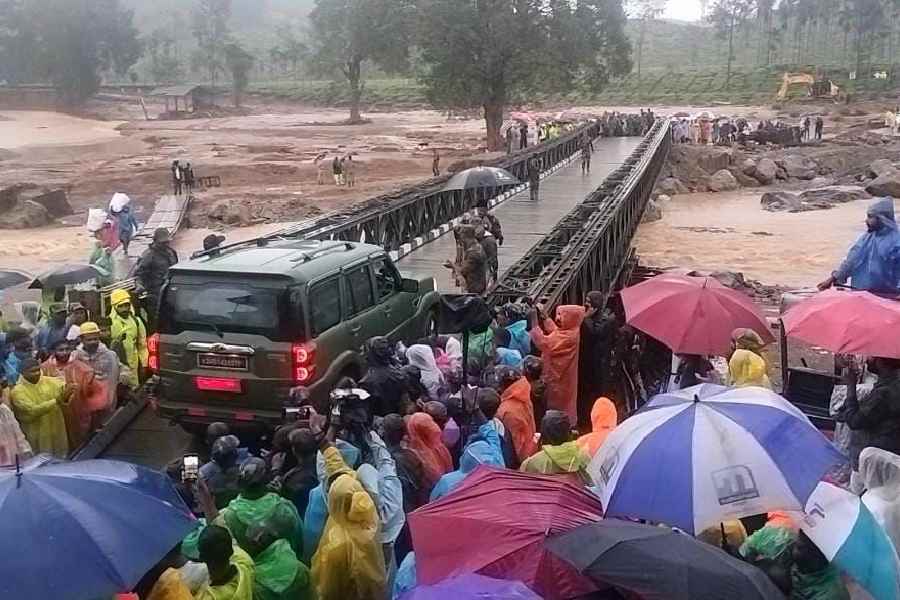 Army engineers scrambled to construct the bridge to ferry heavy equipment from the nearest town of Chooralmala to the affected area, Mundakkai, after rising water in a river washed away a makeshift bridge on Wednesday.
