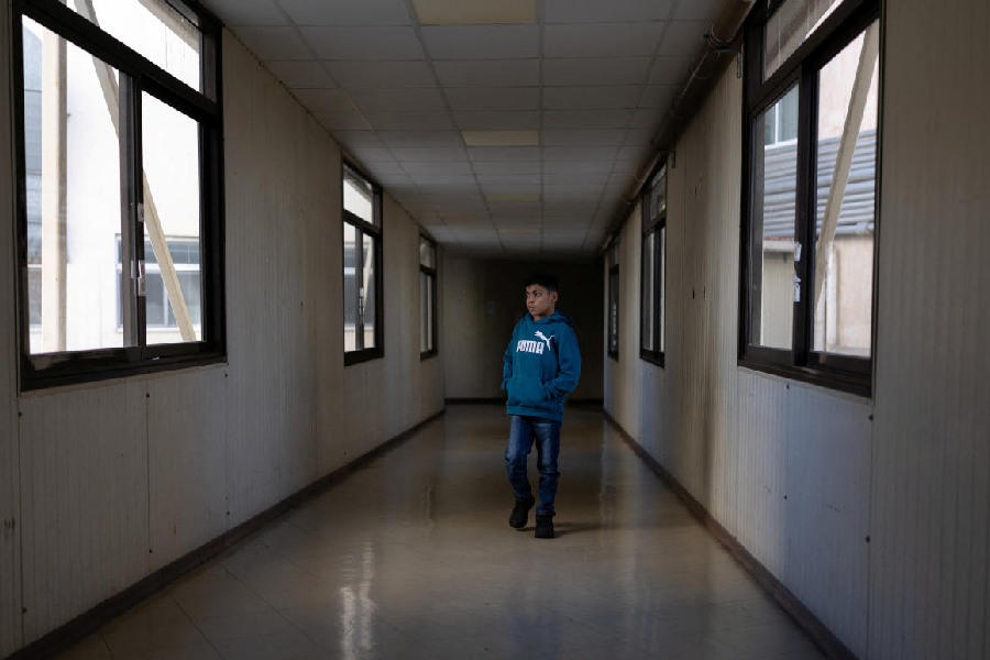 Syrian refugee Yahia Aldarwish, 10, walks in a corridor at the General Children’s Hospital of Athens Aghia Sophia ahead of a kidney transplant with his father as donor, in Athens, Greece.