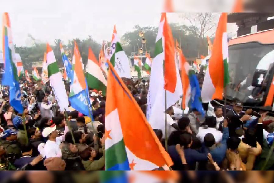 Congress supporters gather to welcome Rahul Gandhi in Cooch Behar. After passing through Tufanganj and Cooch Behar town, Gandhi will conduct a padayatra from Maa Bhawani Chowk in Cooch Behar.