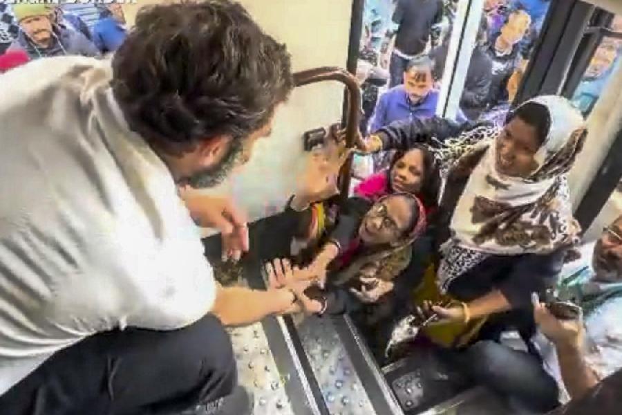 Congress leader Rahul Gandhi interacts with supporters during the Bharat Jodo Nyay Yatra. The CPI (M) and Left parties, allies of the Congress within the state and the INDIA bloc at the national level, are expected to join the march.