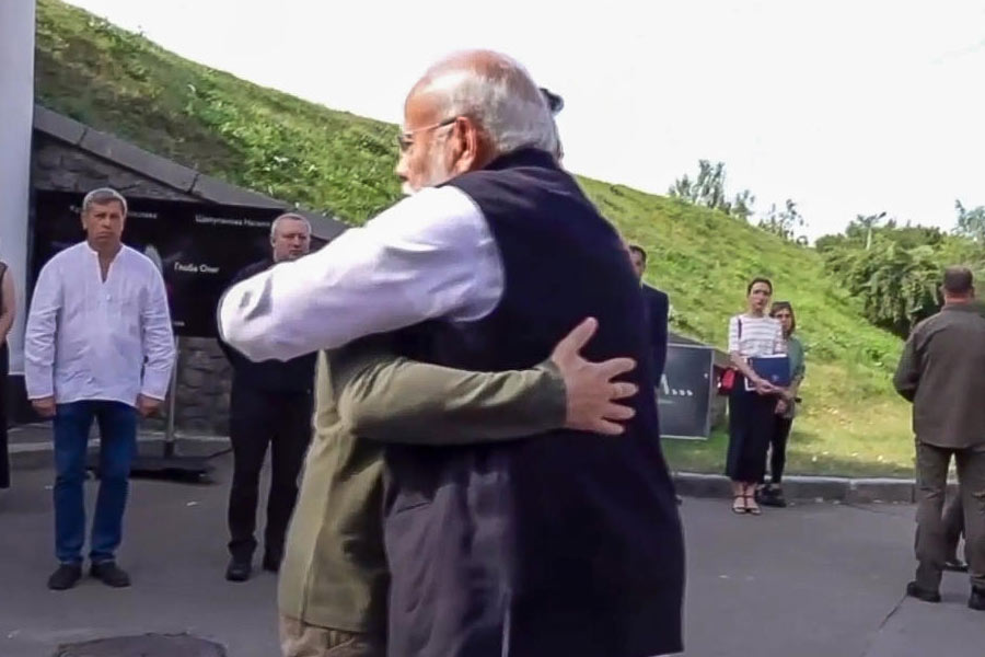 Prime Minister Narendra Modi met President Volodymyr Zelenskyy on the first-ever visit to Ukraine by an Indian prime minister. PM Modi and Zelenskyy hugged and shook hands as they met at the Martyrologist Exposition in Kyiv.