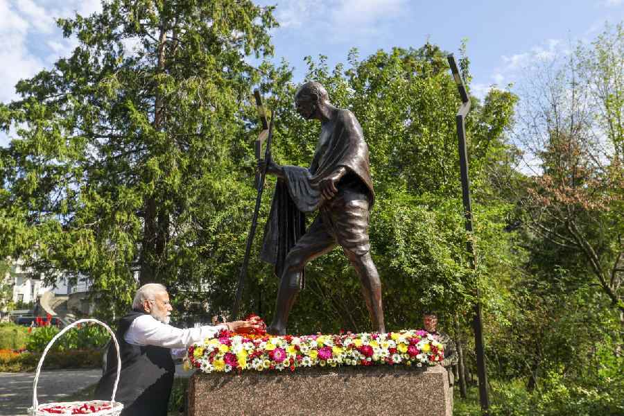 Modi underscored the relevance of Mahatma Gandhi’s eternal message of peace in building a harmonious society, as he paid floral tribute to the statue of the iconic Indian leader here in war-torn Ukraine.