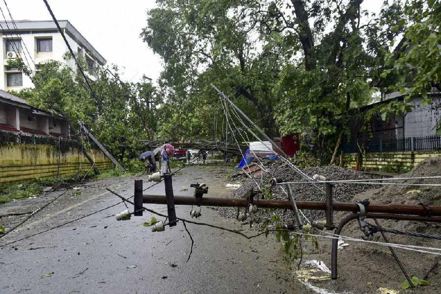 A collapsed electric pole after the landfall of cyclone Remal, in Guwahati, Assam. The cyclone, which caused widespread destruction in parts of Bengal and Bangladesh, has now entered the North East with rains lashing in Assam, Mizoram, Meghalaya and Manipur. In Arunachal, the IMD has predicted thunderstorms with lightning and extremely heavy rainfall in isolated places of Papum Pare and West Kameng district.