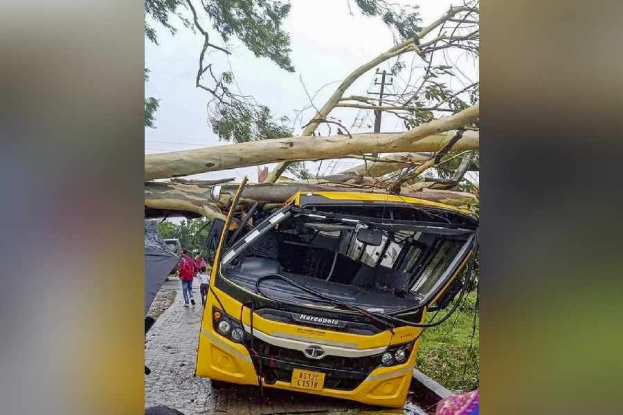 A tree uprooted due to the landfall of Cyclone Remal blocks a road, in Guwahati. Two persons were killed and 17 others injured in separate incidents as heavy rains accompanied by strong winds, as an impact of cyclone Remal, left a trail of destruction in Assam. One person, identified as Putul Gogoi, died in a landslide caused by incessant rains in Lakhimpur district. A 17-year-old college student, identified as Kausik Bordoloi Amphi, was killed when a tree fell on the auto-rickshaw in which he was travelling at Dighalbori in Morigaon district. There were four others in the vehicle and all of them were injured, reported PTI quoting authorities.