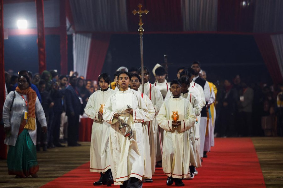 Mass servers perform rituals on Christmas Eve at a church in New Delhi.