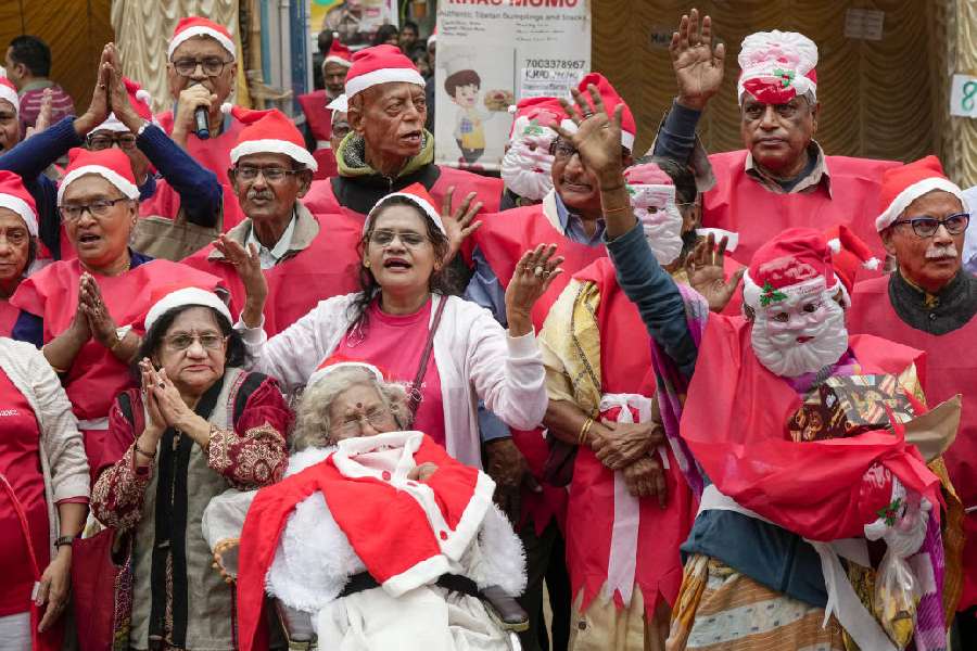 Senior citizens celebrate Christmas at a park, in Calcutta.