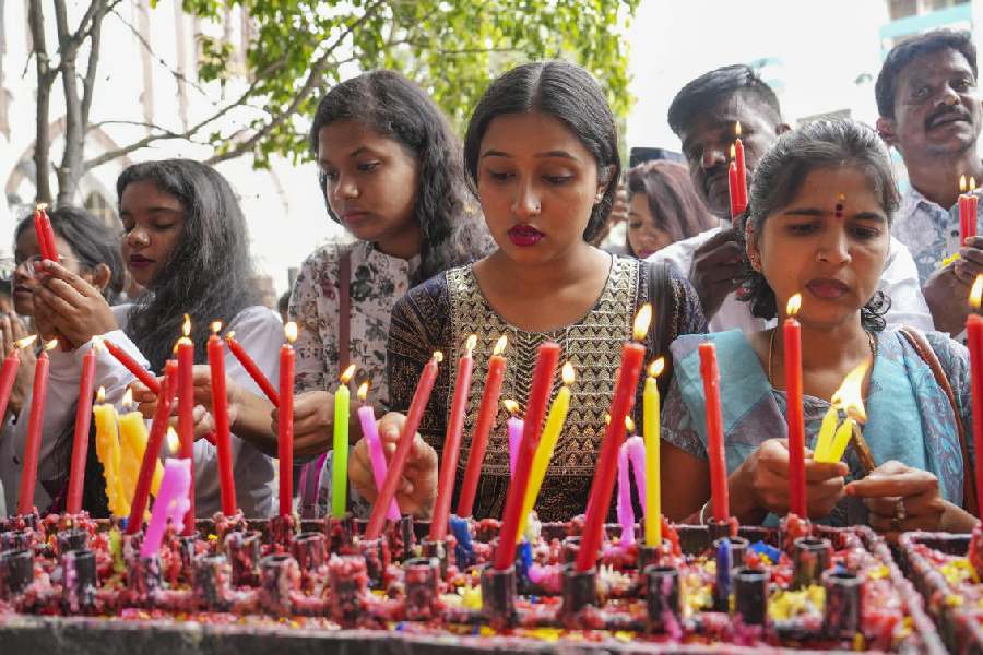 Christians light candles at the St Basilica church on the occasion of Christmas, in Bengaluru.