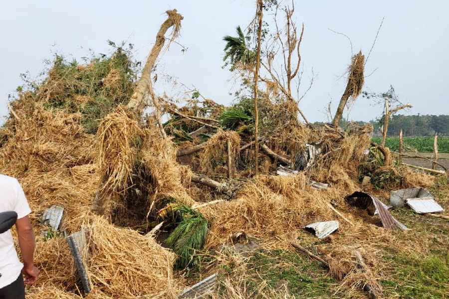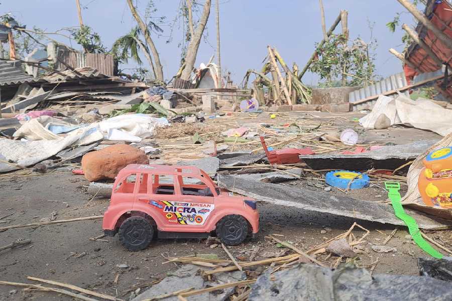 Damaged toys and other items strewn on a road after a storm in Jalpaiguri district. Among the most affected areas in the district were Rajarhat, Barnish, Bakali, Jorpakdi, Madhabdanga and Saptibari, officials said, adding that several acres of agricultural land and crops suffered damage.