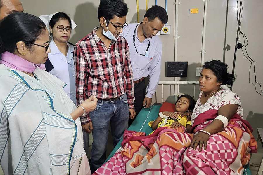 West Bengal Chief Minister and TMC supremo Mamata Banerjee visits people injured in a storm, at a hospital in Jalpaiguri district. When asked about providing compensation, Banerjee said, "As the model code of conduct is in place, I can't say anything about it. You have to talk to the district administration."