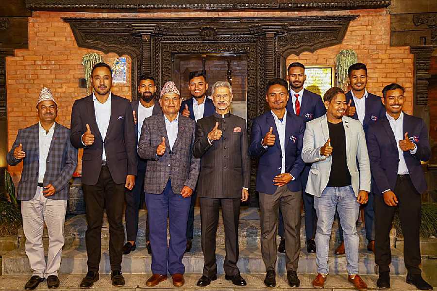 External Affairs Minister S. Jaishankar during an interaction with members of the Nepal cricket team.