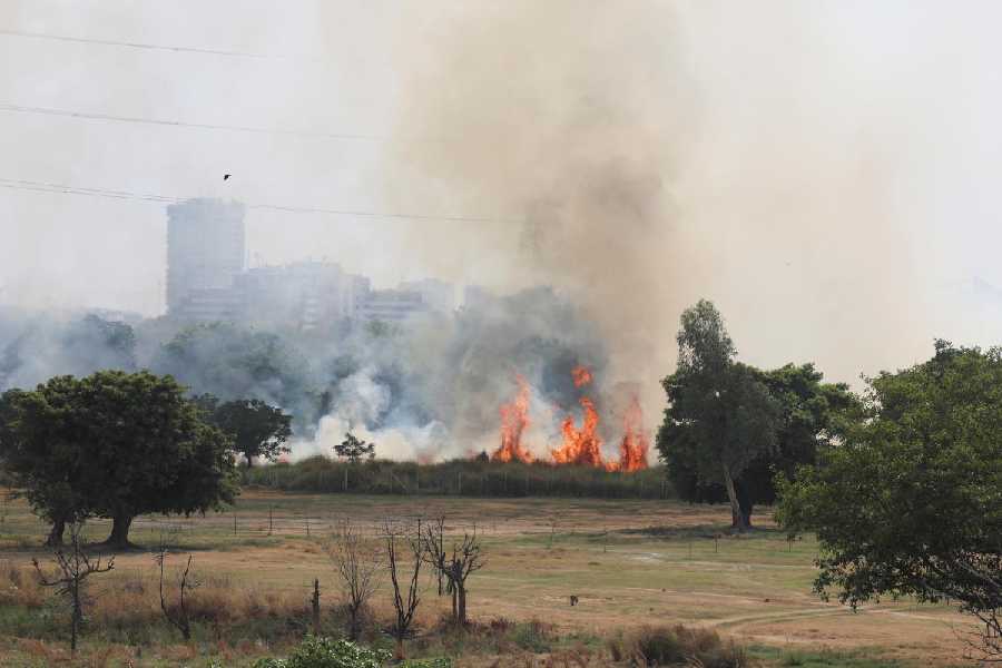 Heatwave in India: Smoke billows from a field which caught fire on a hot summer day during a heatwave in New Delhi, India, June 3, 2024. With Ninety-nine suspected heatstroke deaths in Odisha, 33 poll personnel dead in Uttar Pradesh during the seventh and final phase of the 2024 Lok Sabha elections and severe water shortage in some parts of the national capital Delhi - India is currently enduring a devastating heatwave.