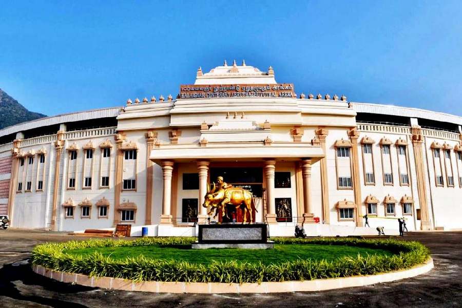 A view of Jallikattu venue ahead of its inauguration by Tamil Nadu Chief Minister M K Stalin, in Madurai. It has been established at an estimated cost of about Rs 62.78 crore.