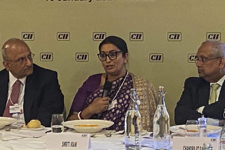 Union Minister Smriti Irani at a CII session on the sidelines of World Economic Forum (WEF) Annual Meeting. Irani, the minister for women and child development as well as minority affairs, led the Indian delegation at the ongoing 2024 annual meeting.