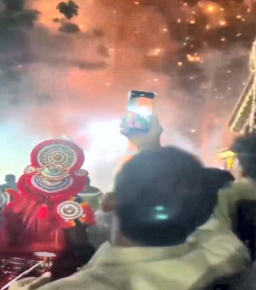 Hundreds of people were captivated by watching the auspicious Theyyam ritual at the Veerarkavu Temple in this northern district when a thundering explosion and a ball of fire shattered the serene atmosphere around midnight.