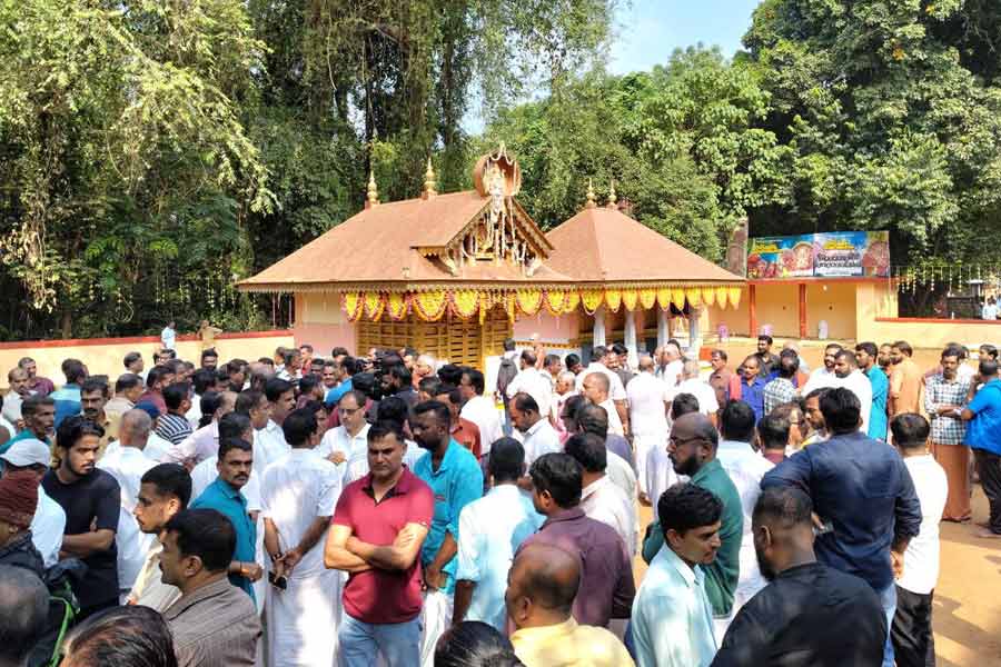 In the footage, a large crowd could be seen gathered on one side of the temple, with a Theyyam artist, dressed in ritualistic red attire, performing amidst them.