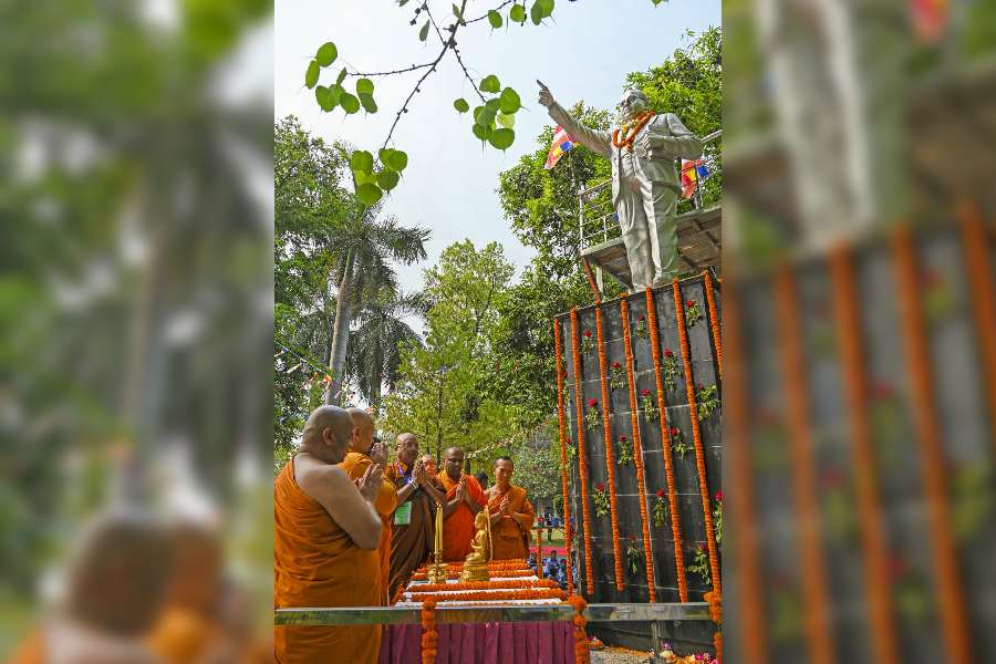 Buddhist Monks pay tribute to BR Ambedkar on the occasion of his birth anniversary, in Gaya district. About 100 students from two agricultural colleges in Maharashtra’s Latur city studied 'non-stop for nearly 18 hours' to commemorate the birth anniversaries of Dr Babasaheb Ambedkar and social reformer Jyotiba Phule, the institutes’ dean said.