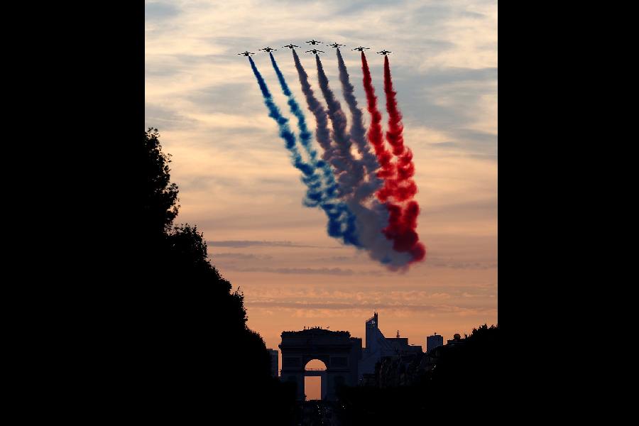 The opening ceremony was held outside the confines of a stadium, just like when the Olympics opened in the city on July 26. Fighter planes flew overhead, leaving red-white-and blue vapors in the colors of the French national flag, before the delegations entered the square in alphabetical order.