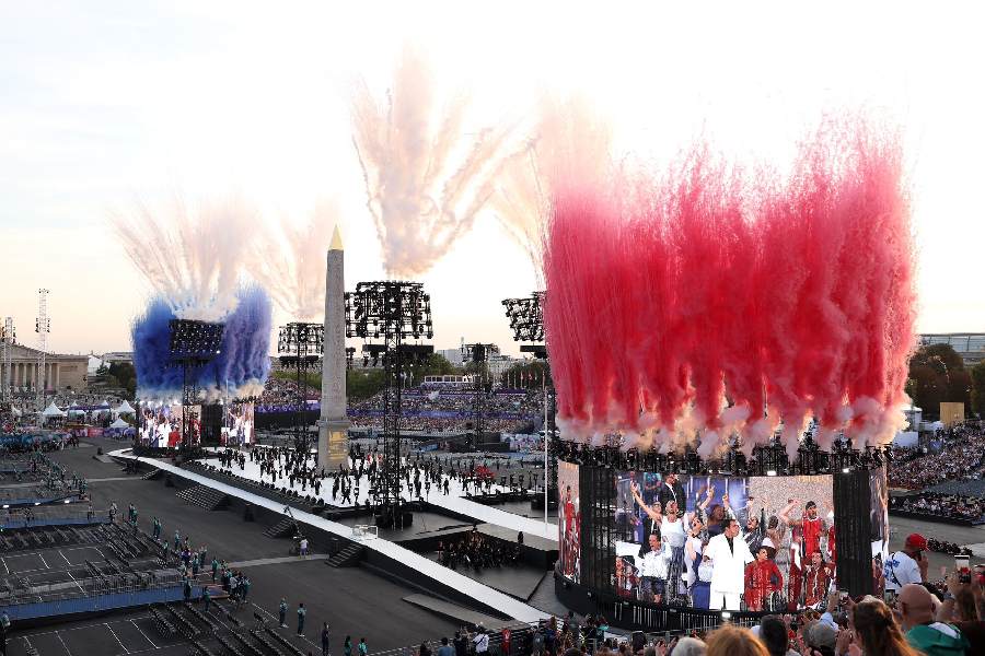 About 50,000 people watched the ceremony in stands built around the iconic square, which is the biggest in Paris and is visible from afar because of its ancient Egyptian Obelisk. Accessibility for athletes in wheelchairs was facilitated with strips of asphalt laid along the avenue and placed over the square.