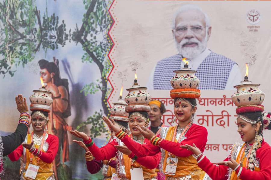 Artists rehearse ahead of Prime Minister Narendra Modi's roadshow.