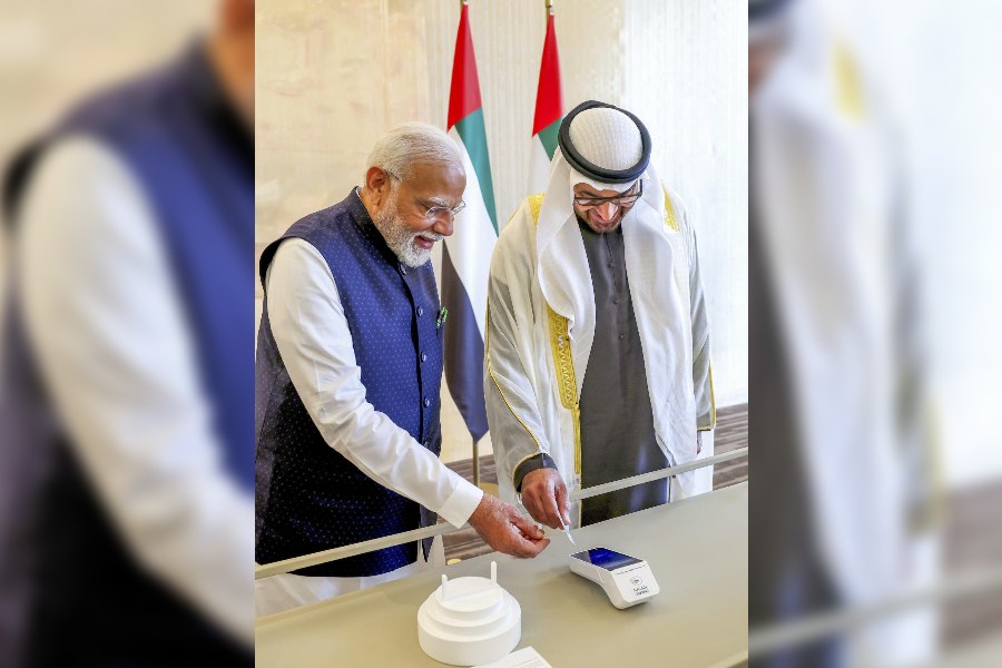 PM Modi and UAE President Mohamed bin Zayed Al Nahyan witness a transaction made using the JAYWAN card, based on India's digital RuPay credit and debit card stack. The MoU on Cooperation in Digital Infrastructure Projects will create a framework for wide-ranging cooperation, including investment cooperation, in the digital infrastructure sector and also facilitate the sharing of technical knowledge, skills and expertise.