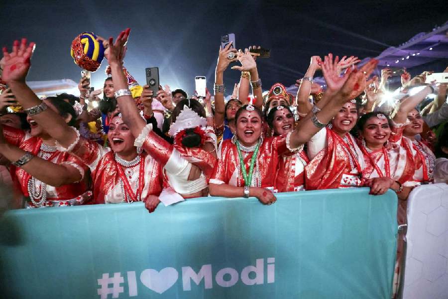Members of the Indian diaspora attend Prime Minister Narendra Modi's 'Ahlan Modi' programme, in Abu Dhabi.