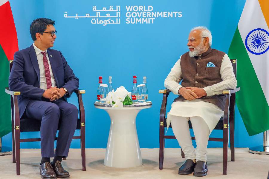 Prime Minister Narendra Modi with President of Madagascar Andry Rajoelina during a meeting, in Abu Dhabi.