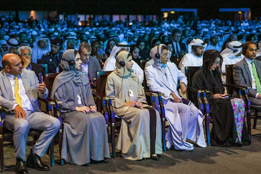 Dignitaries listen to Prime Minister Narendra Modi's address during the World Government Summit, in Dubai.