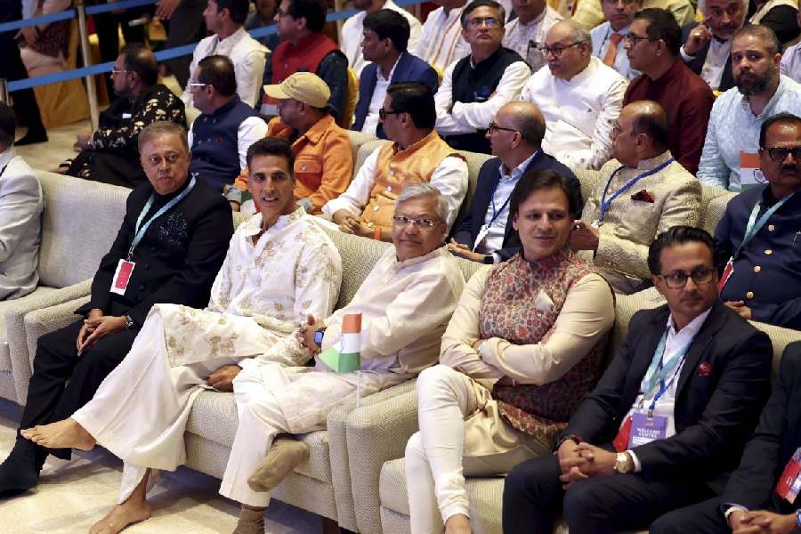 Bollywood actors Akshay Kumar and Vivek Oberoi during the inauguration of the BAPS Hindu Mandir, in Abu Dhabi.
