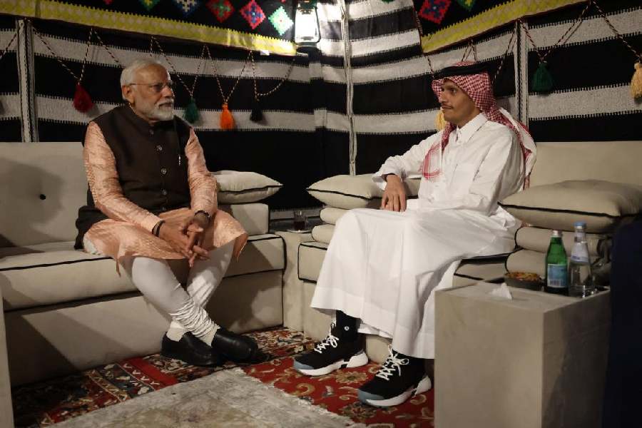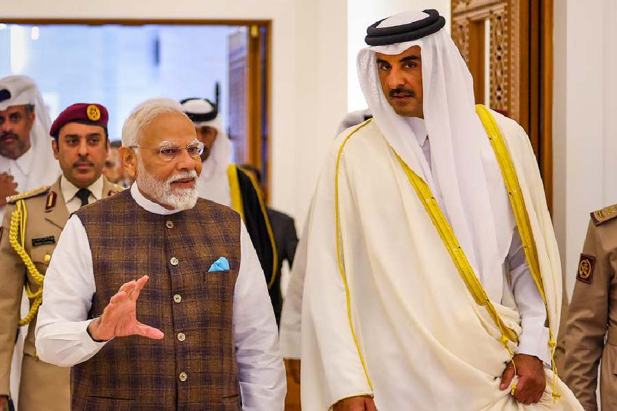 Prime Minister Narendra Modi with his Qatari counterpart Sheikh Mohammed bin Abdulrahman Al Thani during a meeting in Doha.