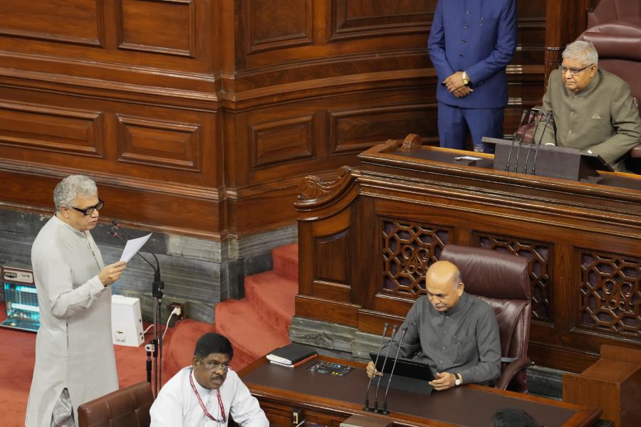 A momentous scene unfolds as Trinamul Congress (TMC) leader Derek O'Brien assumes his responsibilities by taking the oath as a Rajya Sabha MP. This evocative image captures the essence of democratic participation and political commitment.