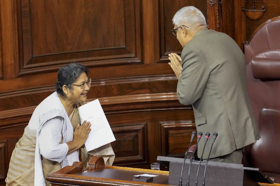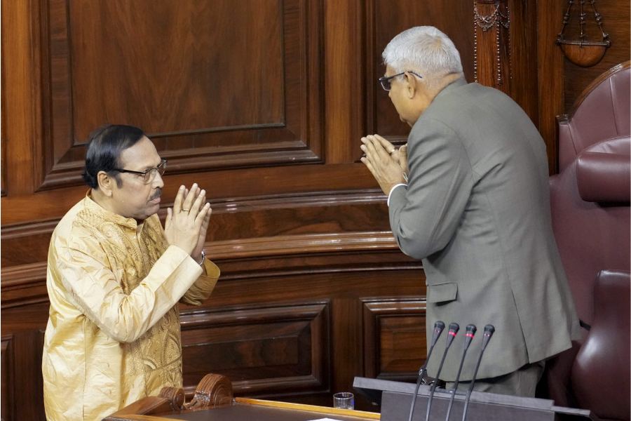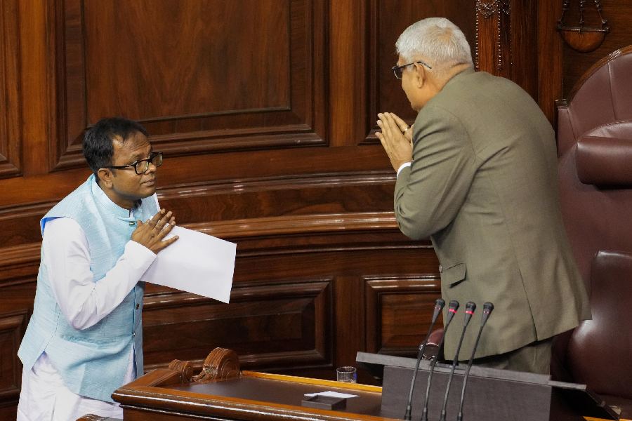 In this picture, TMC leader Prakash Chik Baraik extends a cordial greeting to Rajya Sabha Chairman Jagdeep Dhankhar. This snapshot serves as a poignant reminder of the intricate interplay of personalities and commitments that shape India's legislative journey.