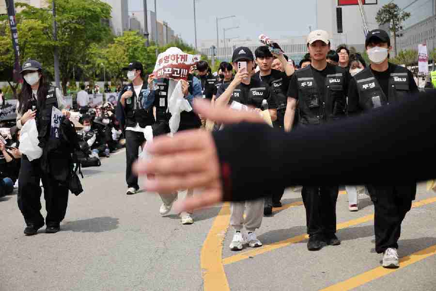 Samsung Electronics’ labour union members arrive for a protest against company’s compensation levels ahead of a planned lengthy strike in front of Samsung Electronics semiconductor plant in Pyeongtaek, South Korea, April 23, 2026. Reuters picture