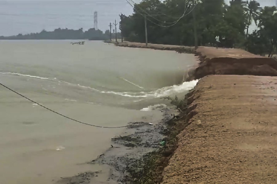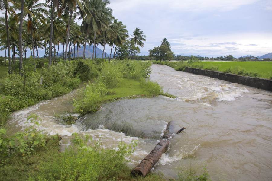 Pizhayattu channel overflows after heavy rain in Kanyakumari district.