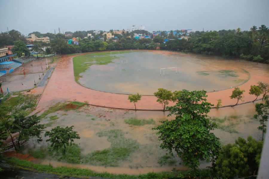 Anna Sports Stadiu waterlogged due to continuous heavy rain, in Kanyakumari district.