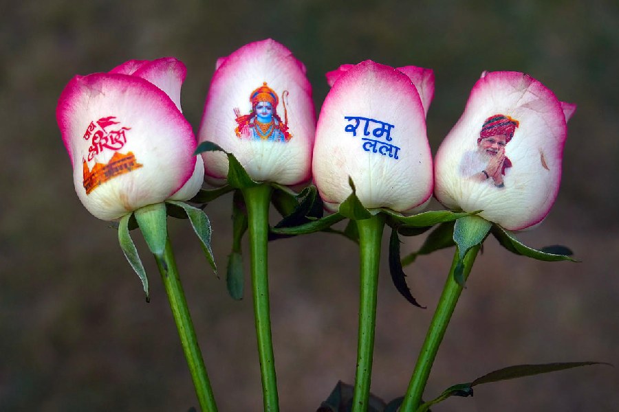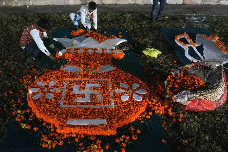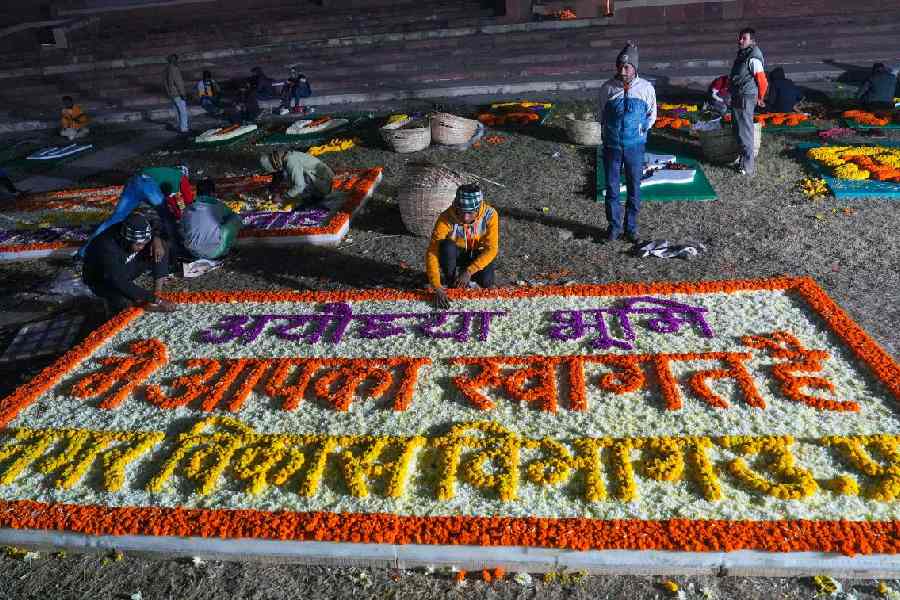 Scores of workers drawn from different parts of the country toiled at Ram Katha Park to meticulously put together the flowers into artistic formations.
