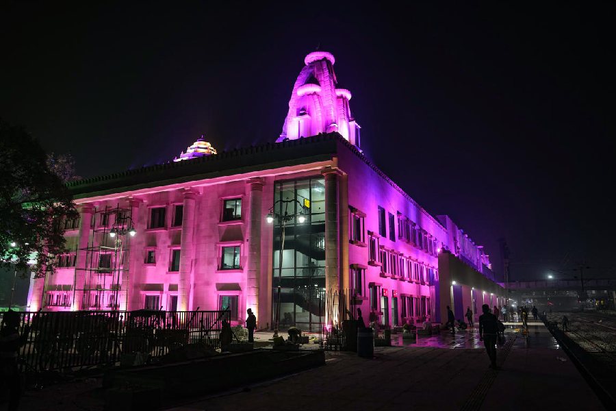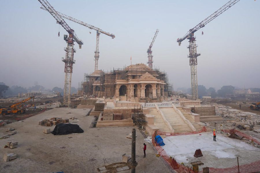 Construction work underway at the Shri Ram Janmabhoomi temple.