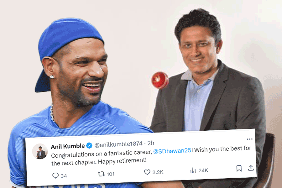 Indian spin wizard and former coach Anil Kumble posted: "Congratulations on a fantastic career, @SDhawan25! Wish you the best for the next chapter. Happy retirement!"