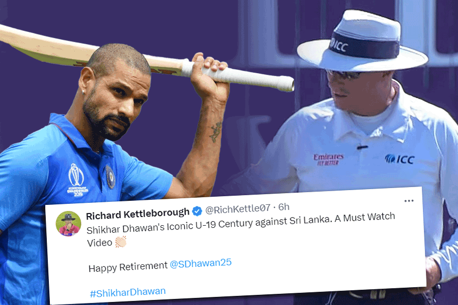 Sharing an old video of Dhawan's, English umpire Richard Kettleborough wrote it's "a must watch video. One of the most elegant left-hand opening batters from India. Happy retirement Dhawan."