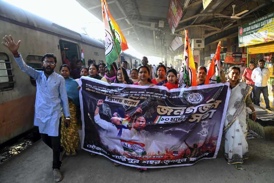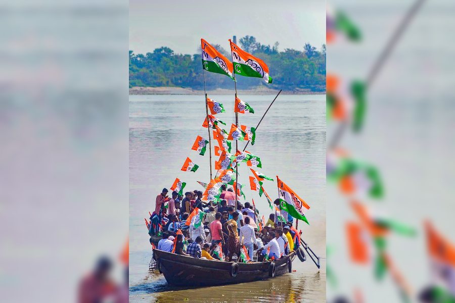 TMC supporters on their way to Calcutta to attend party's rally, ahead of the Lok Sabha elections, in Howrah. Abhishek Banerjee claimed that the ED and CBI raids "won't yield any result as they won't be participating in the elections".