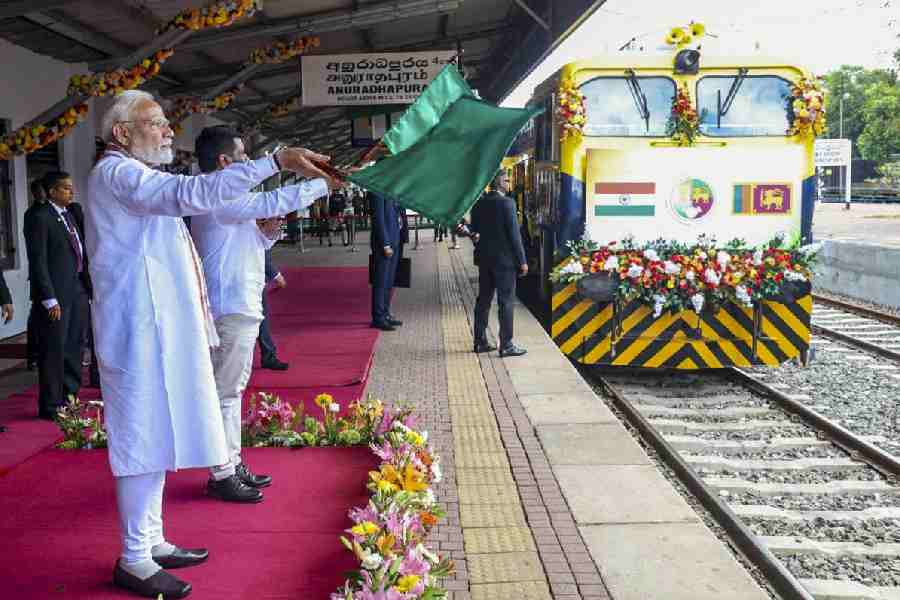 Prime Minister Narendra Modi on Sunday travelled to the historic city of Anuradhapura in North-Central Sri Lanka and launched two India-assisted railway projects before wrapping up his three-day trip to the island nation.