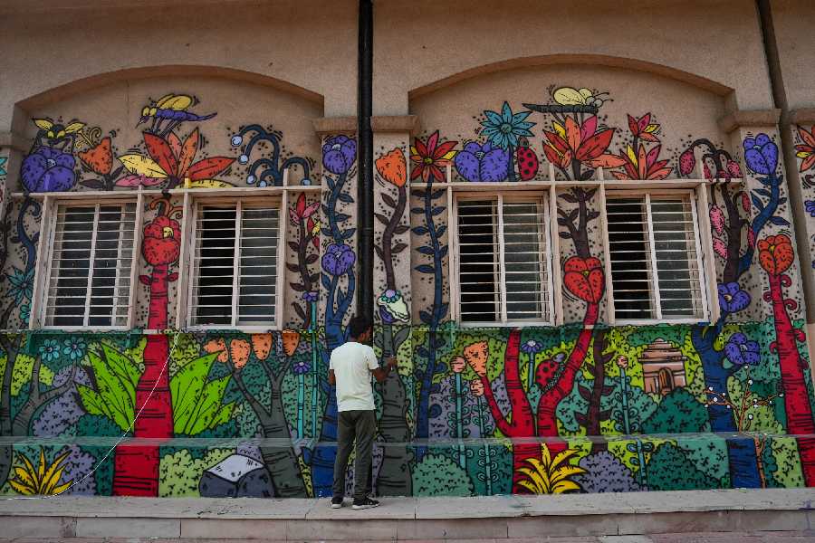An artist painting graffiti at Mandi House metro station. Graffitis of Chhatrapati Shivaji Maharaj, Ahilyabai Holkar, Ahoms, Adi Shankaracharya, Maharana Pratap and Rajaraja Chola have been made under railway bridge. Besides, a large number of roads have been cleaned and beautified, hospitals have been put on 'high alert'.
