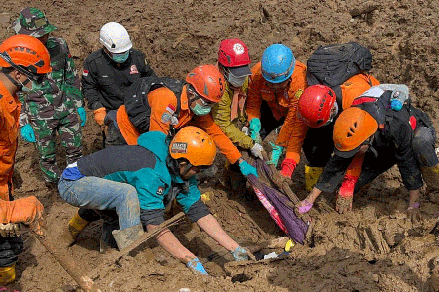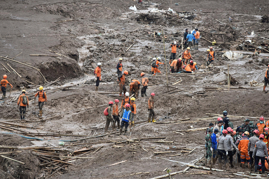 The marines were training in rugged terrain and heavy rainfall when the predawn landslide on Saturday swallowed their camp and some 34 houses in Pasir Langu village on the slopes of Mount Burangrang. A massive search operation has grown from 500 to 2,100 personnel using bare hands, water pumps, drones and excavators.
