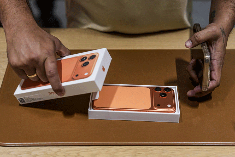 A customer unboxes Apple’s newly-launched iPhone 17 Pro smartphone as its sale begins, at the company’s store at Select Citywalk, Saket, in New Delhi, Friday, Sept. 19, 2025.