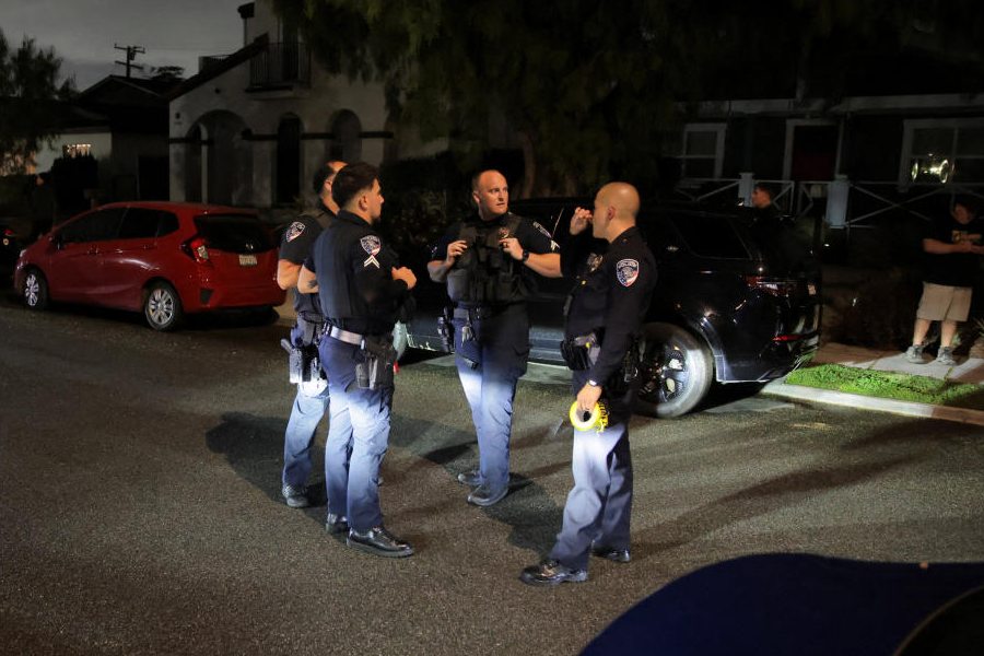 Police officers stand outside the residence associated with Cole Tomas Allen, the suspect in the shooting incident at the annual White House Correspondents' Association dinner in Washington, D.C., in Torrance, California, U.S., April 25, 2026. (Reuters)