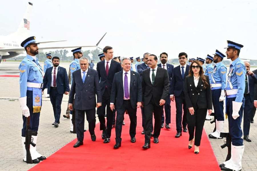 US Special Envoy Steve Witkoff and Jared Kushner walk with Pakistan's Chief of Defence Forces and Chief of Army Staff Field Marshal Asim Munir, and Pakistani Deputy Prime Minister and Foreign Minister Mohammad Ishaq Dar after arriving for peace talks with Iranian officials in Islamabad, Pakistan, Saturday, April 11, 2026. (Reuters)