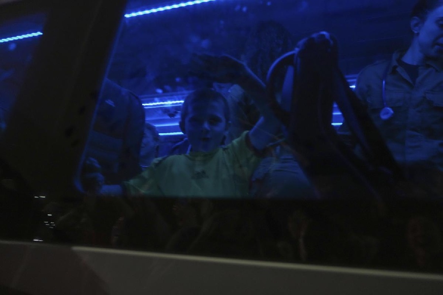 Newly released hostages from the Gaza Strip, are seen in convoy in Ofakim, Israel.