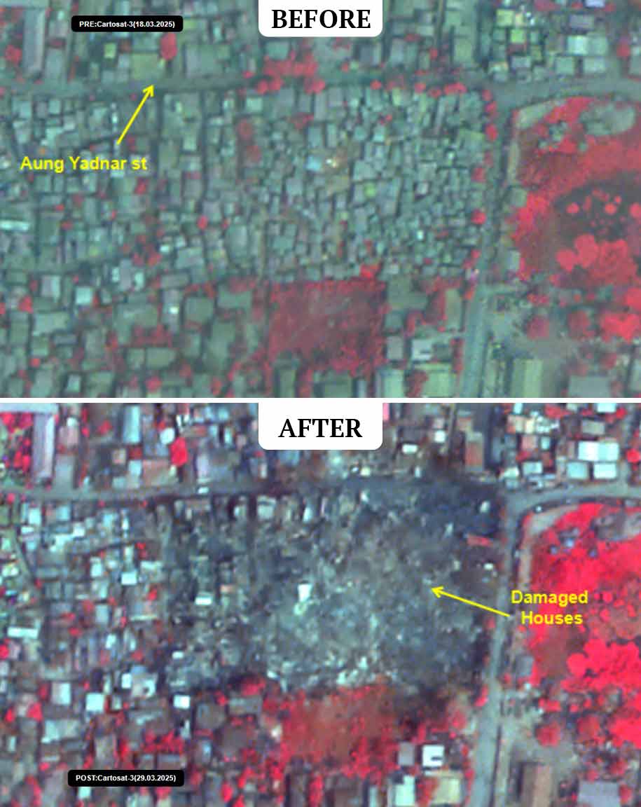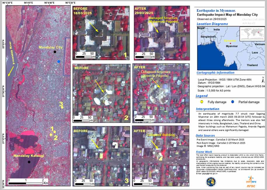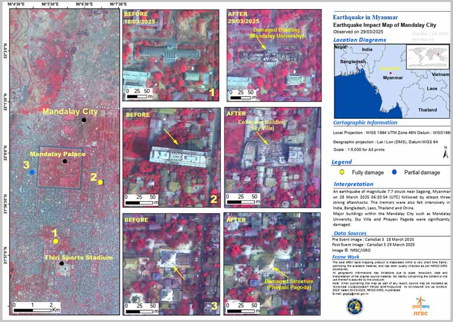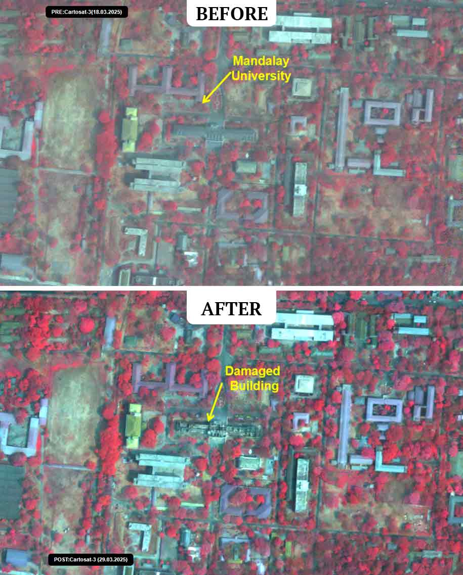 The post-disaster Cartosat-3 imagery was acquired by ISRO on March 29 over the cities of Mandalay and Sagaing in Myanmar, it said.