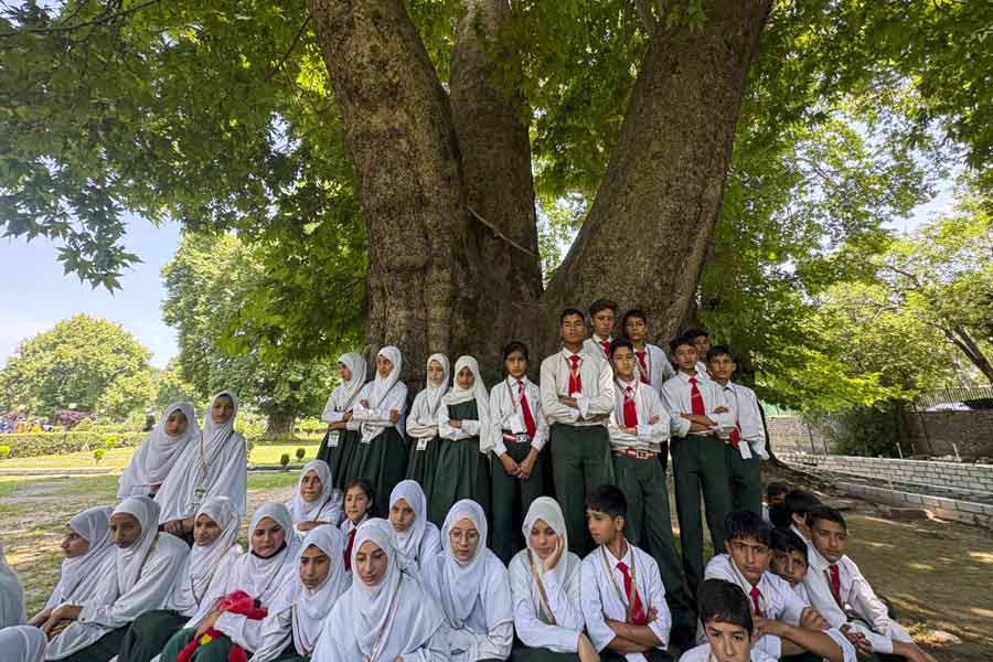 A large number of school children welcomed the tourists at Verinag -- a famous park in south Kashmir's Anantnag, the officials said.