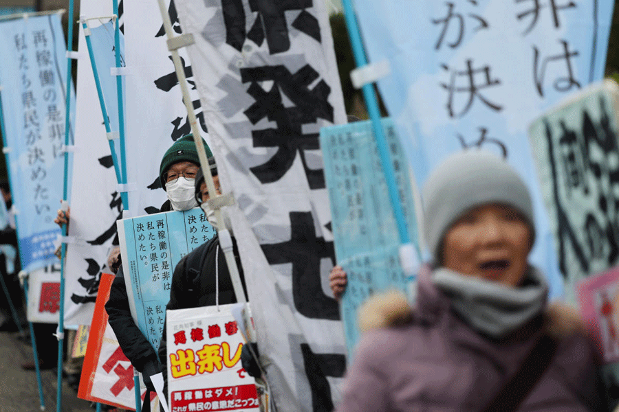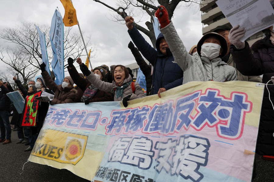 Around 300 protesters, mostly older people, holding banners reading 'No Nukes', 'We oppose the restart of Kashiwazaki-Kariwa' and 'Support Fukushima' gathered in front of the Niigata prefecture assembly on a chilly, grey Monday, as local lawmakers prepared to make their decision later in the day.